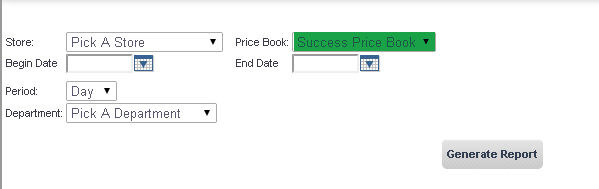- Select the price book you would like to view the report for from
