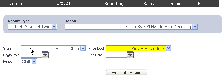 - If you would like to view a report for a particular price book,