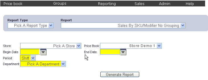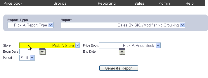To get to theSales By SKU/Modifier No Grouping Report select Reporting
